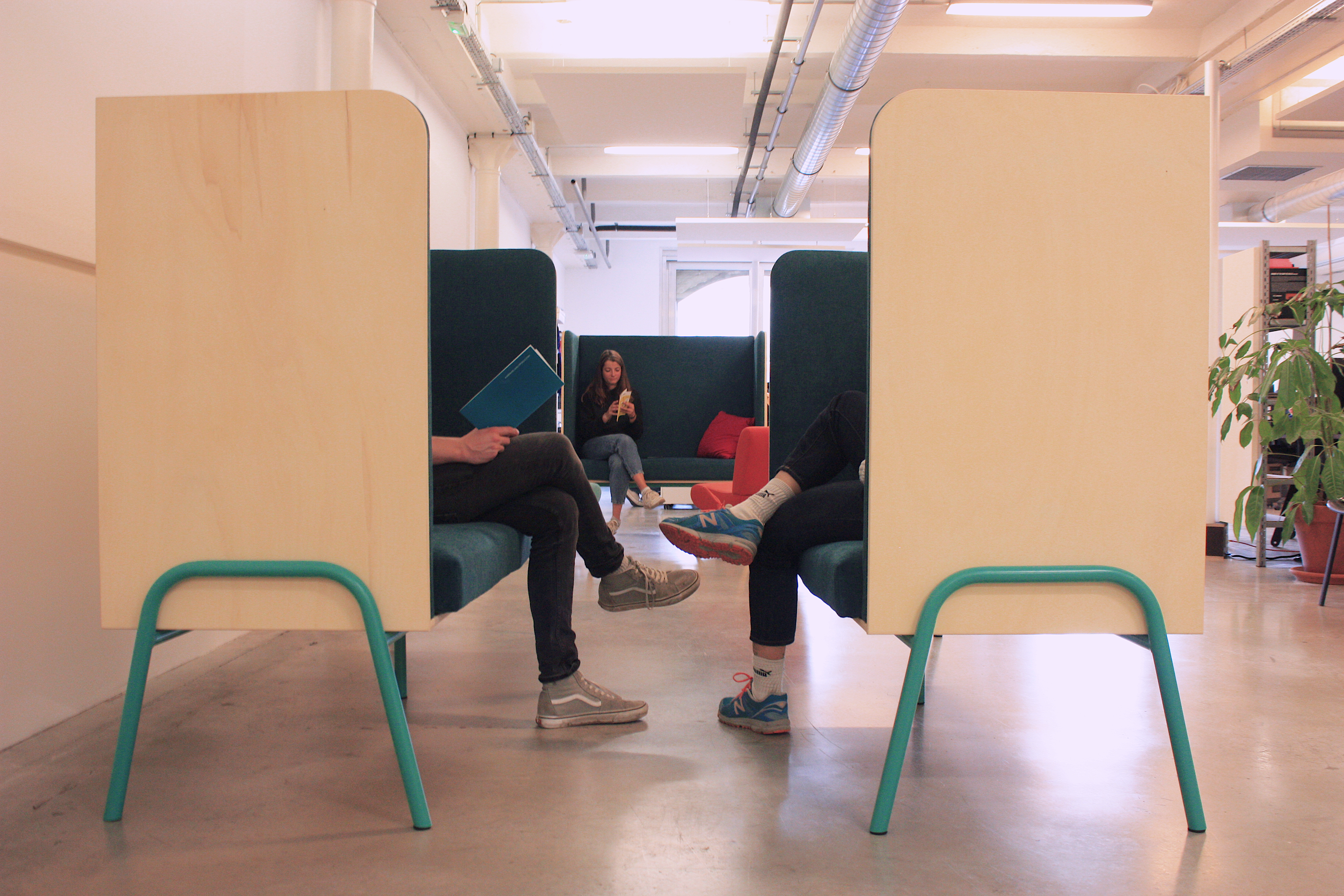 Conception et réalisation d’une petite série de fauteuils « acoustiques » pour les espaces de travail de la SCIC à la Friche Belle de Mai.