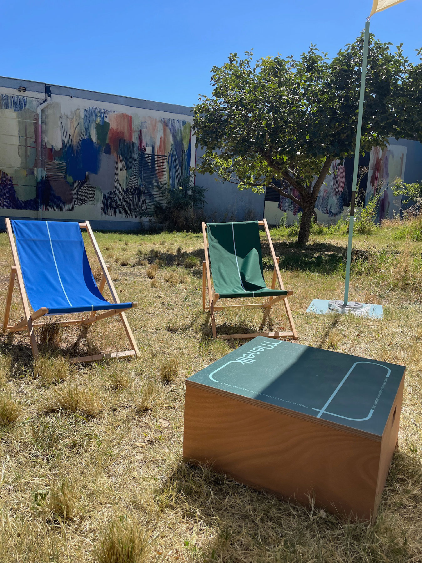 Elle peut également être accompagnée de mâts et d’une voile pour créer un espace ombragé, ainsi que de transats et d’une table-coffre accueillant des livres, formant ainsi un coin de repos convivial lors des saisons estivales.