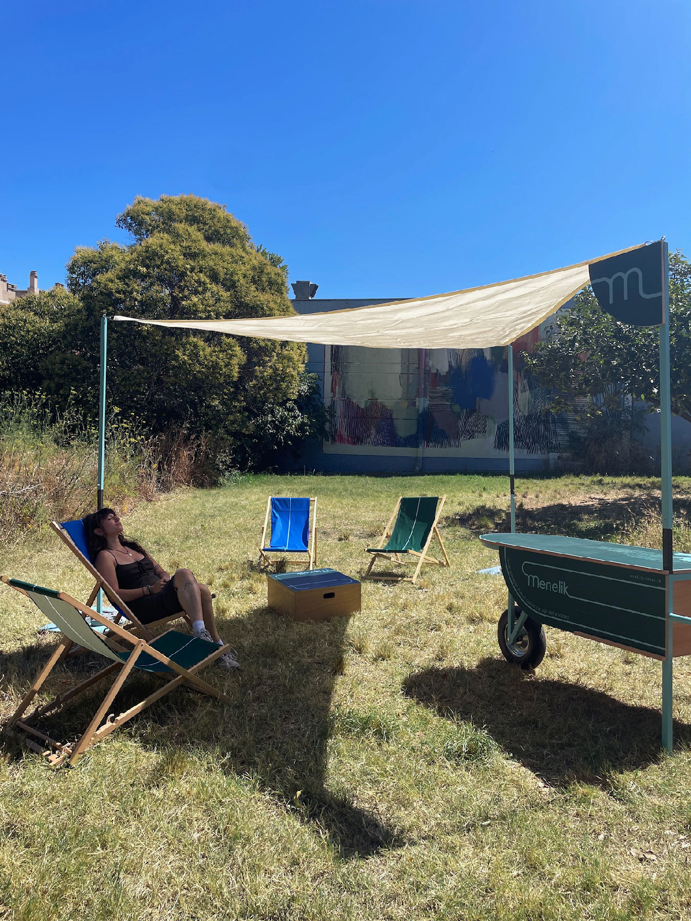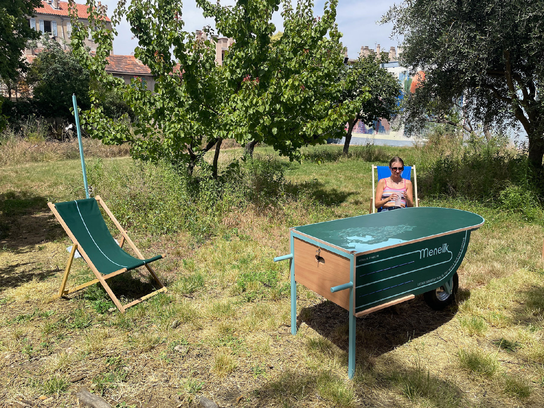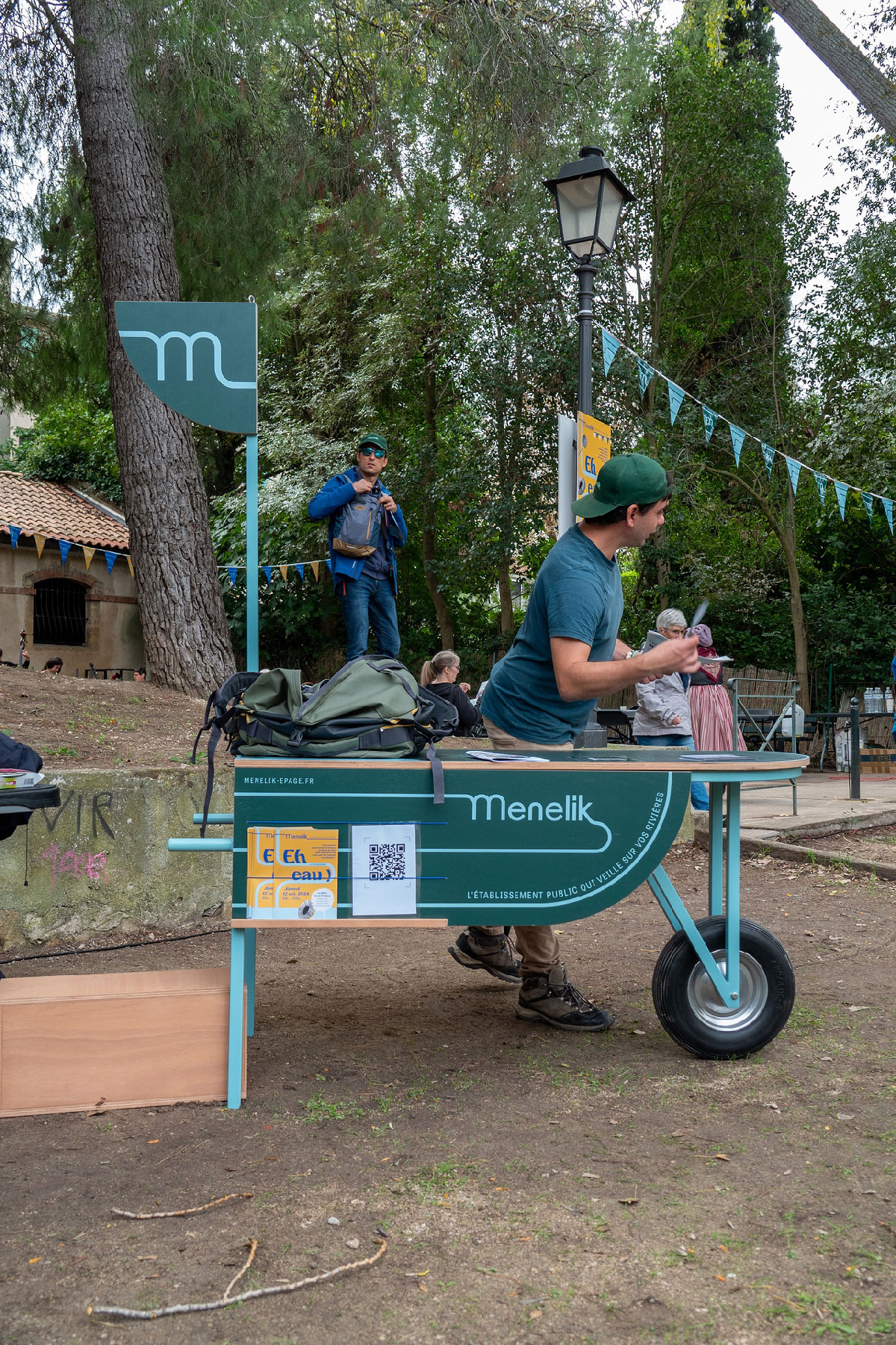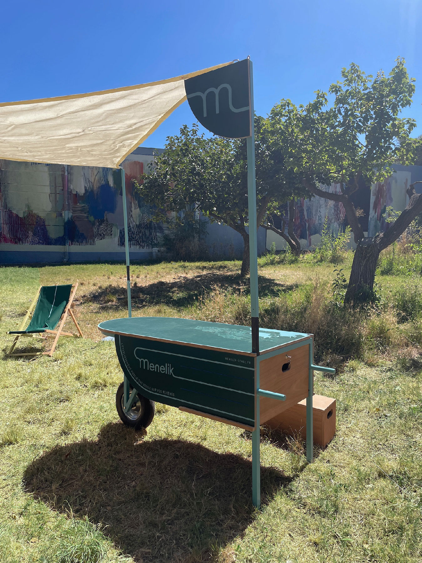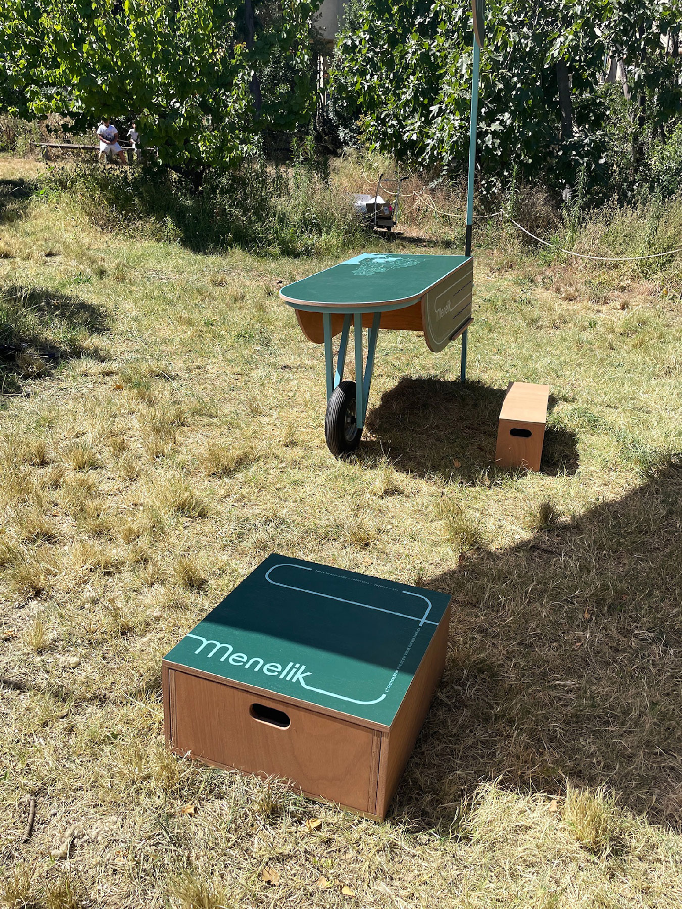 La carriole a été créée pour répondre au besoin de support et de visibilité lors d’événements de sensibilisation ponctuels en extérieur. Elle peut être utilisée de manière autonome, équipée d’un drapeau signalétique servant de point de rassemblement, et déplacée comme une brouette.